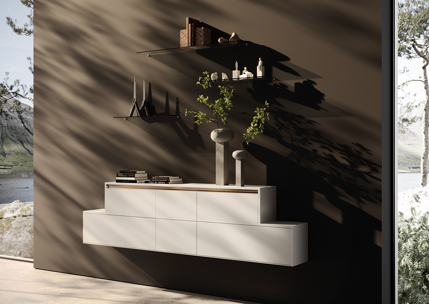 Deze exclusieve designkeuken com­bi­neert mod­ern keuk­ende­sign met hoog­waardi­ge mate­ri­alen tot een sti­jlvol totaal­con­cept voor een open leefruimte. Strakke lij­nen, luxe vit­rinekas­ten en inno­vatieve keuken­ver­licht­ing met het i‑luminate greep­profiel in geborsteld brons mak­en van deze open keuken een tijd­loze blik­vanger waarin archi­tec­tu­ur en wonen har­monieus samenkomen.